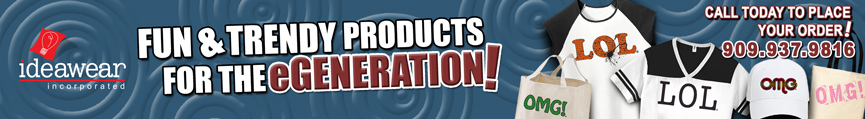 Welcome to Ideawear! Fun and trendy products for the eGeneration! We offer internet lingo like LOL and OMG on all kinds of products like t-shirts, tote bags and much more!